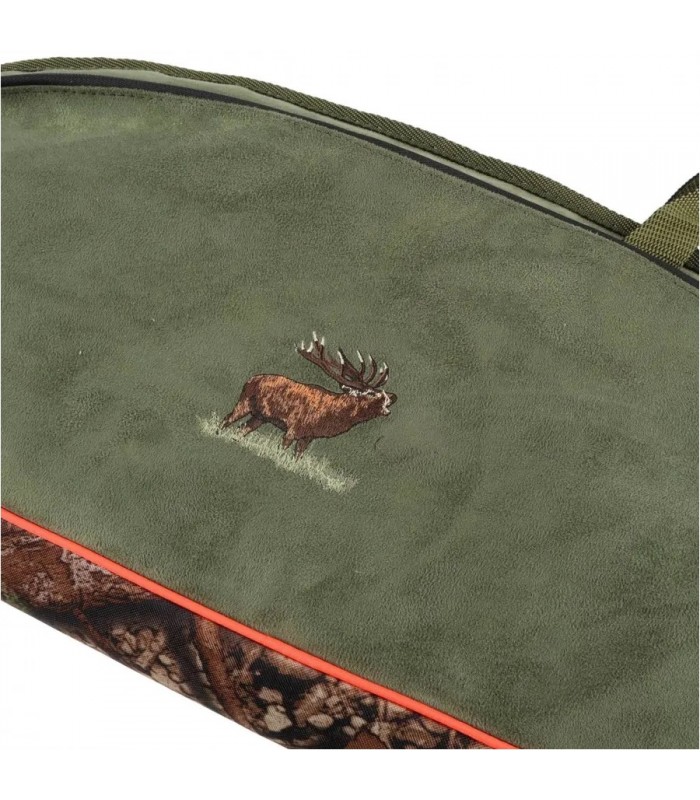 Pokrowiec na broń myśliwską Forsport LPZKAM o długości 1,25 metra to niezawodne akcesorium służące do transportowania broni, zaprojektowane dla myśliwych oraz strzelców rekreacyjnych. Model ten łączy w sobie wysoką jakość wykonania, elegancki wygląd i praktyczne rozwiązania. Pokrowiec jest wykonany z wytrzymałego włókna poliestrowego/ polipropylenowego, dzięki czemu cechuje się wyjątkową trwałością uszkodzenia i przedarcia oraz elegancją. Za zamykanie służą masywne, podwójne zamki błyskawiczne. Na przedniej kieszeni wyszyto haft przedstawiający głowę ryczącego jelenia. Kolorystyka pokrowca to połączenie kamuflażu leśnego oraz koloru oliwkowego.