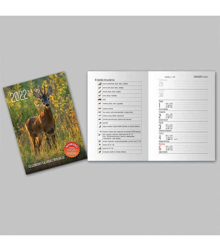 - zawiera praktyczne informacje dla myśliwych: terminarz polowań, wschody i zachody słońca i księżyca z uwzględnieniem zmian czasu, fazy księżyca