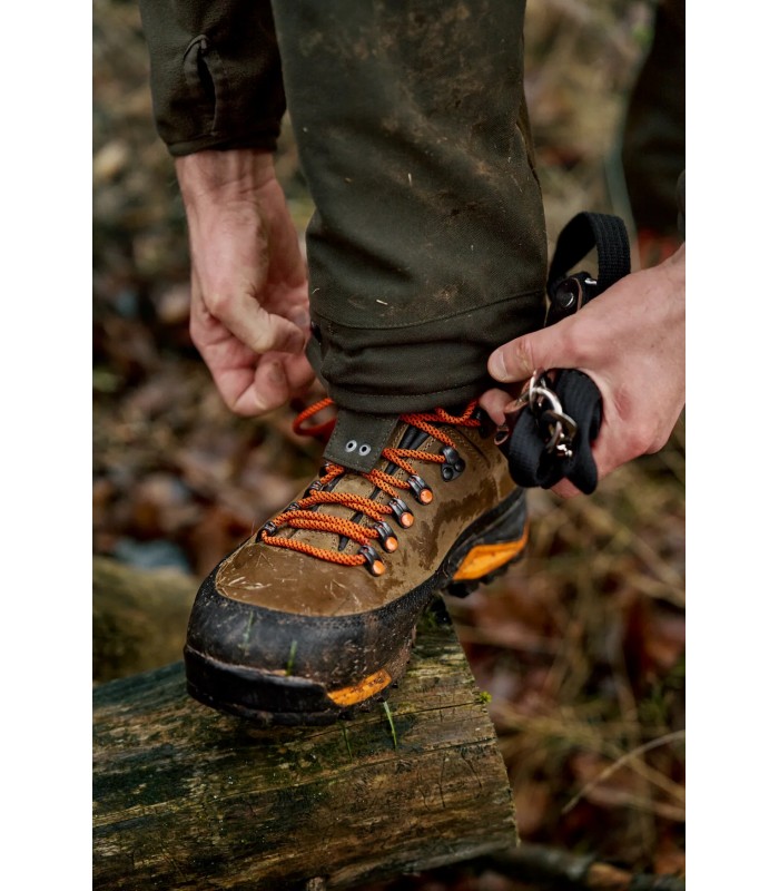 Buty Saxnäs GTX Orange to wysokiej jakości obuwie trekkingowe i myśliwskie, zaprojektowane z myślą o wymagających warunkach górskich i w trudnym terenie. Wykonane z wysokiej jakości skóry, buty te oferują trwałość i wygodę, a jednocześnie zaskakująco niską wagę. Posiadają sztywną podeszwę zapewniającą doskonałe wsparcie na nierównym terenie. Buty wyposażone są w przetestowaną w terenie, wodoodporną membranę GORE-TEX, zapewniającą suchość stóp w mokrych warunkach. Zaprojektowane i wyprodukowane w Europie, buty objęte są dwuletnią gwarancją obejmującą wady materiałowe i produkcyjne. Charakterystyczne pomarańczowe sznurowadła i detale doskonale pasują do stroju myśliwskiego, dodając mu stylu i zapewniając widoczność. Te buty to idealne połączenie funkcjonalności, wytrzymałości i estetyki dla prawdziwego myśliwego lub trekkera.