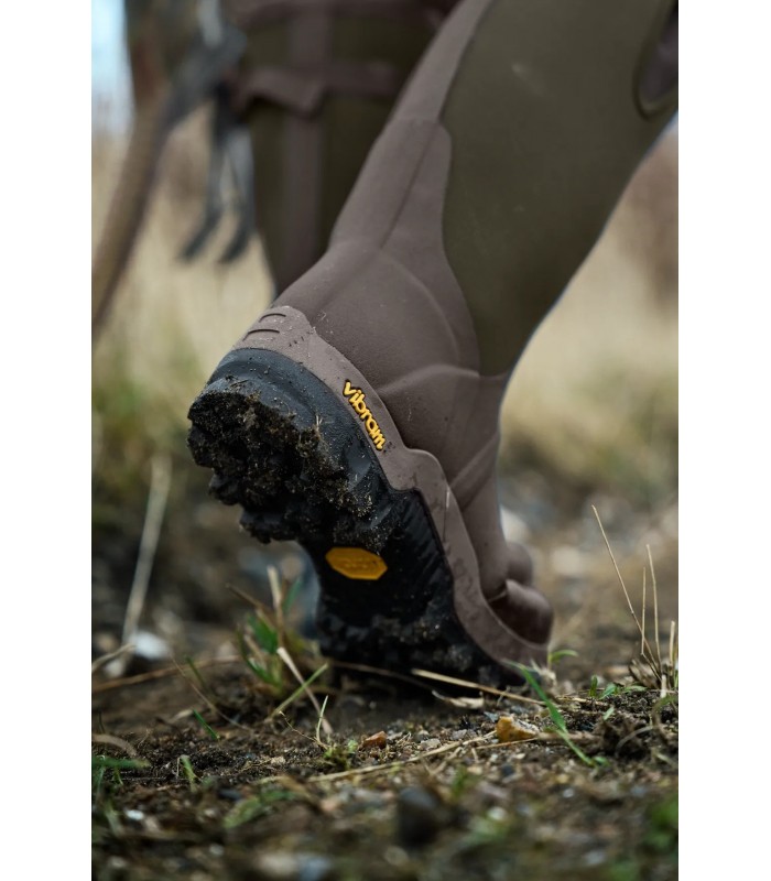 Gumowe buty Forester Textile to szczyt lekkości i wydajności w obuwiu terenowym. Zaprojektowane jako najlżejsze buty do kolan w ofercie, są przeznaczone dla myśliwych, którzy pokonują rozległe tereny lub poruszają się w zróżnicowanym terenie. Konstrukcja buta stawia na zwinność, wygodę i trwałość, dzięki czemu idealnie nadają się do przemierzania wrzosowisk i zarośli. Całkowicie gumowa podeszwa Vibram®, wyposażona we wzmocniony nosek, zapewnia doskonałą ochronę przed ostrymi kamieniami i nierównymi powierzchniami, gwarantując niezawodną stabilność w trudnych warunkach. Elastyczność jest kluczowa, a boczny klin umożliwia regulowane, dokładne dopasowanie, które pasuje do różnych rodzajów obuwia. Wnętrze wyściełane jest 3-milimetrową neoprenową podszewką z polaru, zapewniając niezbędne ciepło podczas jesiennych i zimowych wypraw. Lekka konstrukcja sprawia, że buty są szczególnie odpowiednie dla myśliwych i osób pokonujących długie dystanse, ale ich wszechstronność rozciąga się na krótkie spacery, różne aktywności na świeżym powietrzu, a nawet na codzienne noszenie. Gumowe buty Forester Textile łączą w sobie innowacyjność i funkcjonalność, dzięki czemu są niezawodnym, wszechstronnym obuwiem do różnorodnych aktywności na świeżym powietrzu.