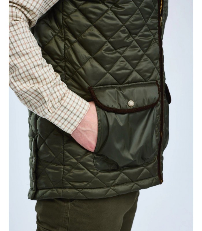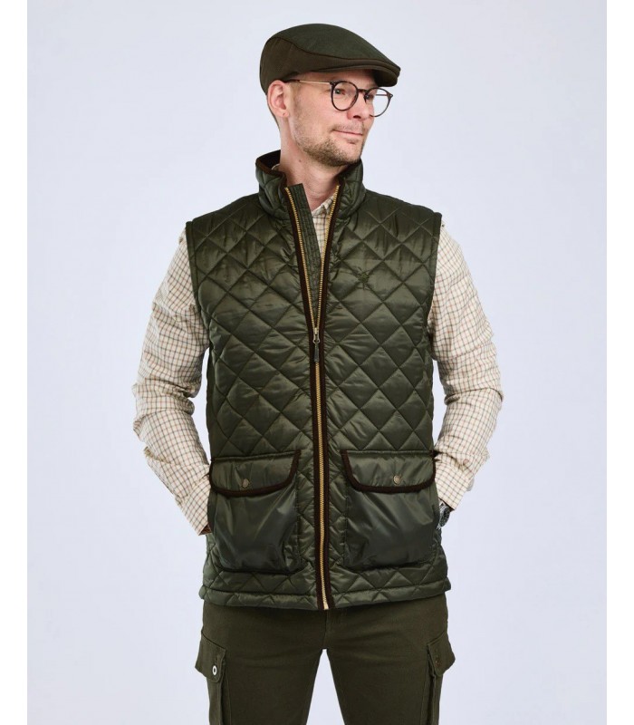 Ta pikowana męska kamizelka myśliwska wyróżnia się stylowymi, brązowymi, sztruksowymi detalami i eleganckim wyglądem. Wiatroszczelna i wykończona hydrofobową powłoką bez PFC, zapewnia ochronę w łagodną pogodę. Posiada przednie kieszenie z patkami na amunicję oraz wewnętrzną kieszeń zapinaną na zamek na cenne przedmioty. Napy z tyłu umożliwiają rozszerzenie dołu dla większego komfortu, idealne do siedzenia. Wszechstronna kamizelka, idealna zarówno na polowanie, jak i do codziennego użytku – idealna na koszulę lub jako warstwa pośrednia na spacer z psem.