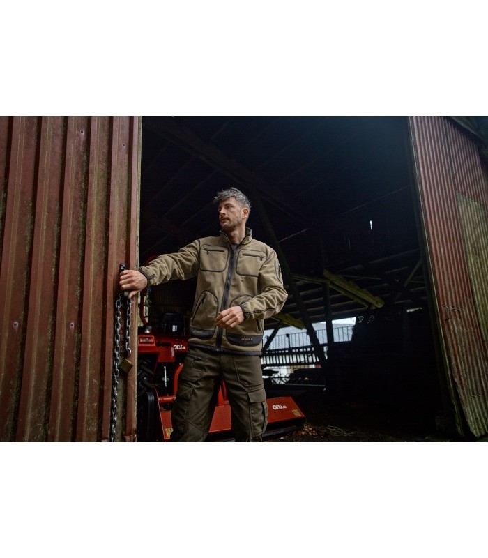Dwustronna kurtka polarowa z wiatroszczelną, oddychającą membraną GORE-TEX WINDSTOPPER®, kieszenią na radio i czterema przednimi kieszeniami zapinanymi na zamek.