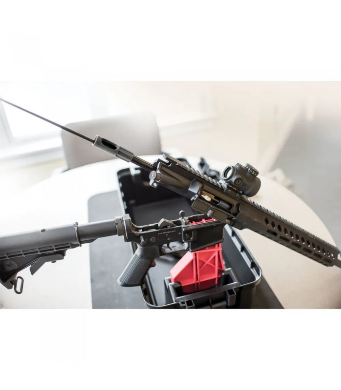 Uniwersalna prowadnica pozwala na szybkie i bezpieczne wprowadzenie wyciora do przewodu lufy. Poprzez wycentrowanie z przewodem lufy, wycior nie wygina się, przez co nie rysuje przewodu lufy. Okienko na preparaty czyszczące ułatwia aplikację i redukuje rozbryzgiwanie (chroniąc np. drewniane powierzchnie). Pasuje do niemal wszystkich komór zamkowych repetierów. W zestawie jest też specjalny adapter do broni typu AR-15/MSR