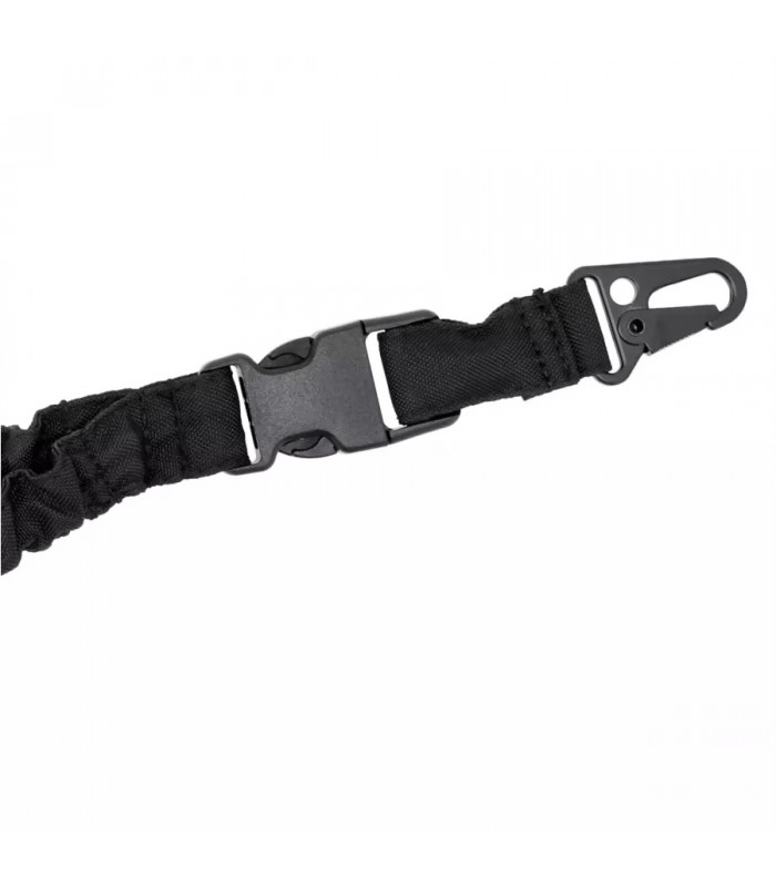 Taktyczne zawieszenie 1-punktowe typu bungee zostało wykonane z poliestru charakteryzującego się odpornością na przetarcia oraz odpornością na uszkodzenia mechaniczne.